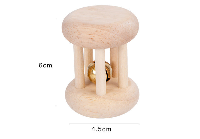 Vierteiliges Baby-Rasselspielzeug aus Holz in natur